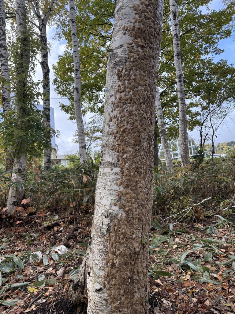 2025年10月14日〜17日にかけて北海道におけるマイマイガ卵塊採取遠征に出かけてきました。札幌市や千歳市などの道西部、日高山脈を境としてその西側と東側、帯広を中心とする十勝平野、それから旭川や富良野など合計13地点において合計で300個程度の卵塊が得られました。